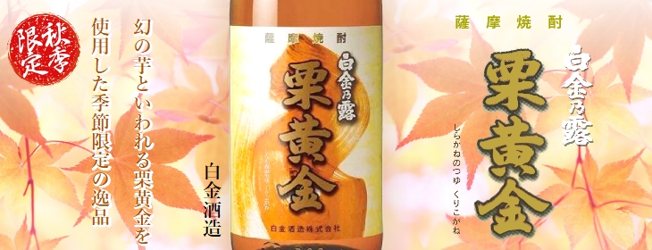 栽培が難しく、収穫量も少ないため、市場に殆ど出回らない「幻の芋」と呼ばれる「栗黄金」。「白金乃露 栗黄金」は、その「栗黄金芋」と「黄金千貫」の2種類のさつま芋を原料に、白金酒造伝統の磨き芋製法で丁寧に仕込まれた原酒をブレンドして造られた逸品です。栗黄金を蒸して食べた時のようなホクホク感をお楽しみ下さい。貴重なさつまいもを使用しておりますので生産量が限られており、年1回の季節限定出荷となっております。
