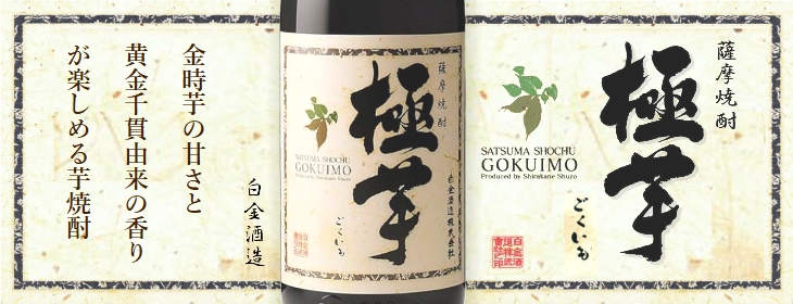 創業明治2年の白金酒造は、創業以来変わらない製法を大切に受け継ぎながら焼酎造りを行っている蔵元です。「極芋」は、白金酒造こだわりの「磨き芋」仕込みで、原料芋を一つ一つ丁寧に皮を剥き、痛んだ部分を取り除く事によって、雑味や苦味が少ない焼酎に仕上がっております。また、一般的な芋焼酎に使用される黄金千貫に加え、金時芋の原酒をブレンドする事により、金時芋特有の甘さと黄金千貫由来の香りを楽しむことが出来ます。非常にコストパフォーマンスに優れた焼酎です。
