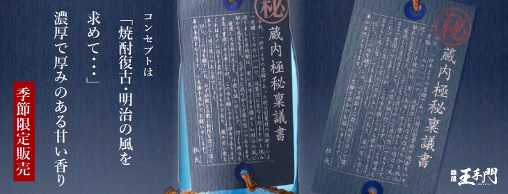 濃厚な風味で焼酎玄人を唸らせる「蔵内極秘稟議書」。芋の割合を通常の1.2倍に高め、二次仕込みで温度を高めに設定して甘みを引き立たせる製法で醸されております。また、蒸留後に冷却する温度は低く設定する事により、焦げ臭やフーゼル油の旨みを充分利かせ、完全な無濾過で仕上げております。力強い芋の香り、しっかりとした濃厚で厚みのある芋の旨みが楽しめます。「初心者の方は、芋臭さにご注意下さい」の注意書きがある通り、上級者向けの芋焼酎です。